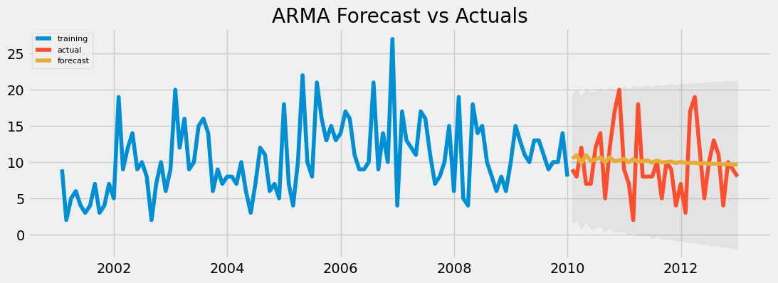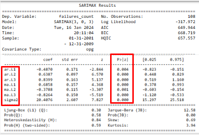 Accurately forecasting the occurrence of failures over time through effective utilization of the ARMA (AutoRegressive Moving Average) model.